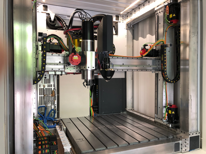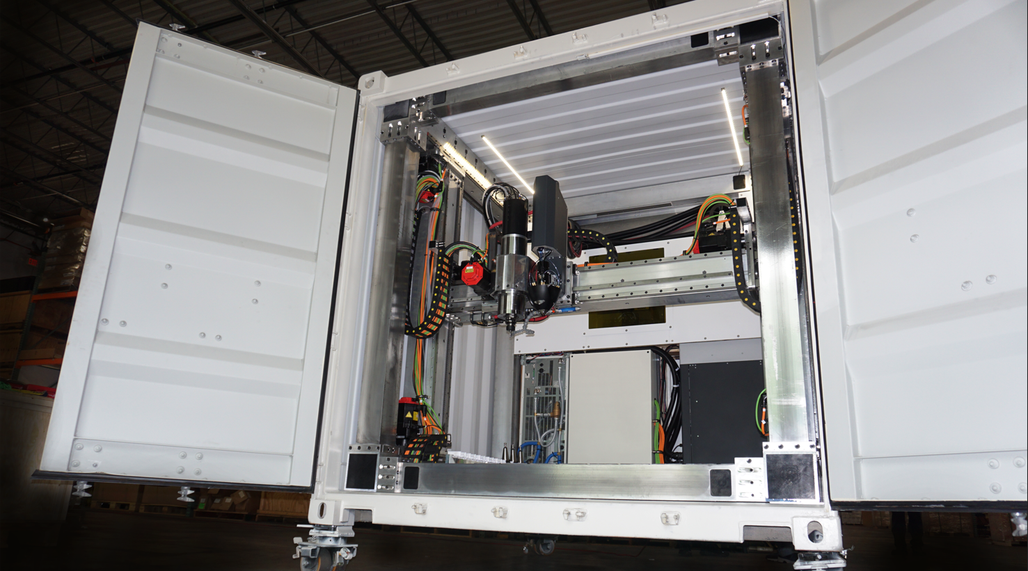 Metal production + milling head built into a 10-ft. standard height shipping container